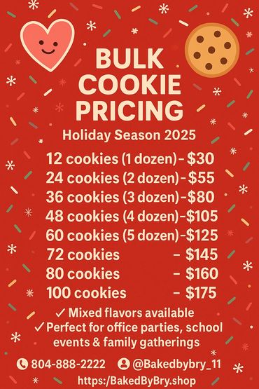 At BakedByBry, we are passionate about baking delicious homemade cookies and mini cakes. As a 12-year-old entrepreneur, I pour creativity and love into each treat, making every bite special.